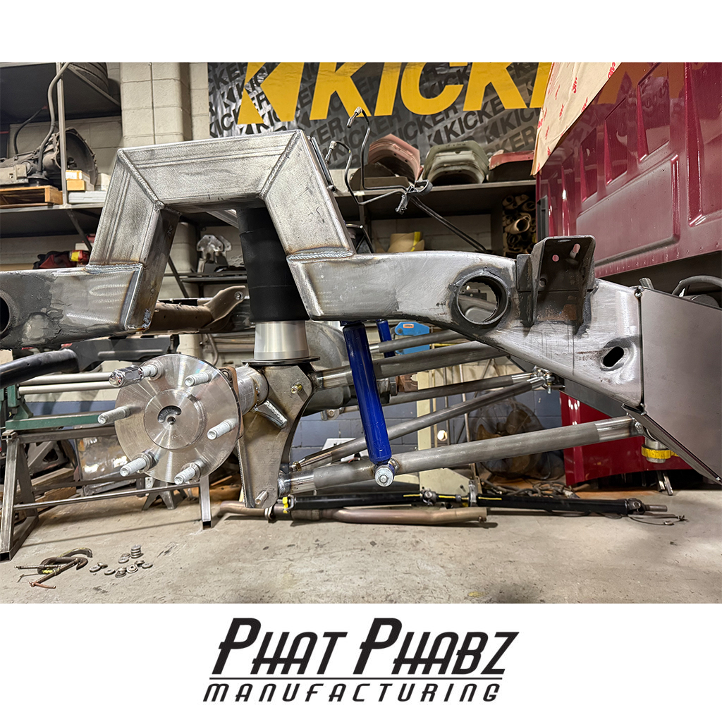 -Front Crossmember with 4-Link brackets already welded. Also includes locater plates for the crossmember that utilize the factory hanger mounting holes.
