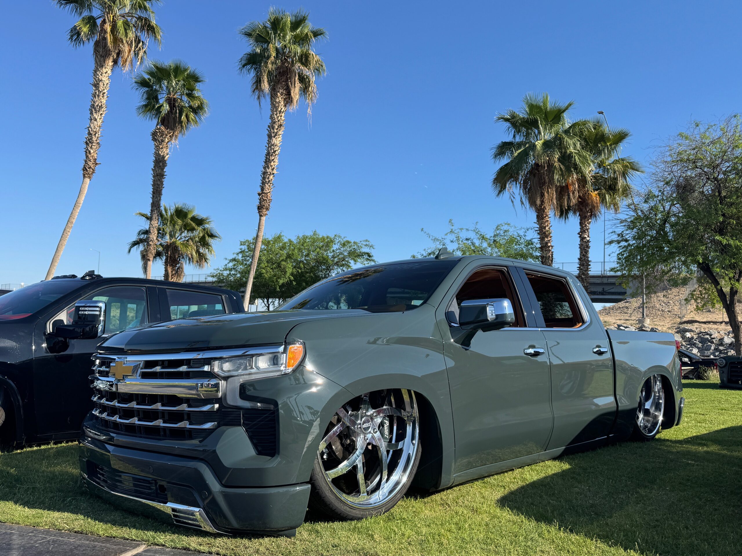 Our full Phat Phabz Chassis was powder coated satin black including all of the suspension to give a somewhat factory look. Accuair E-Level manages the ride heights with an Endo-VT tank. Dual black ViAir compressors pump into the tank.