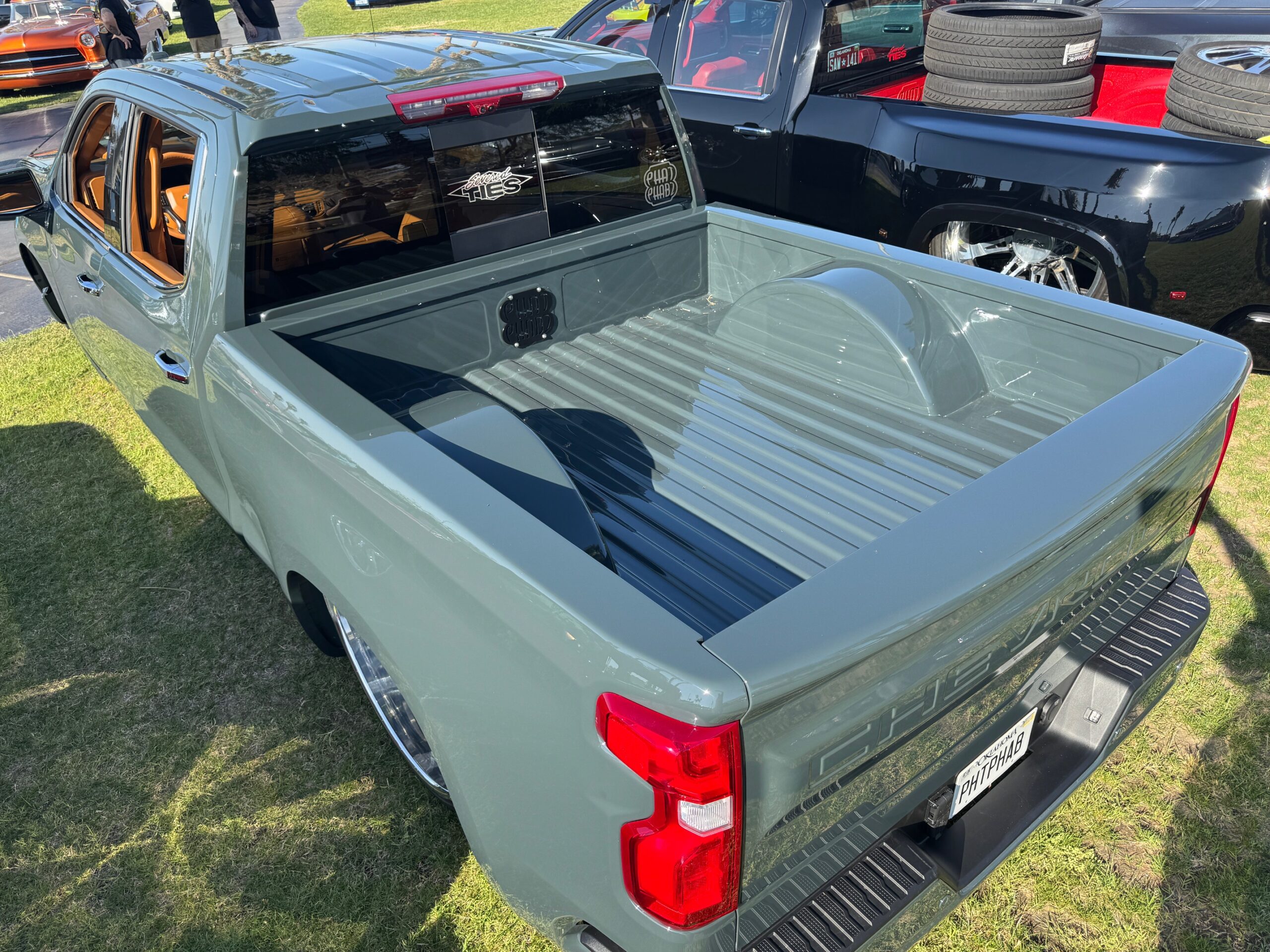 Body mods include shaved bed rail caps(including tailgate), shaved fuel door, shaved plastic mudflap holes, shaved rear bumper steps, shaved hitch protrusion on bottom of rear bumper.